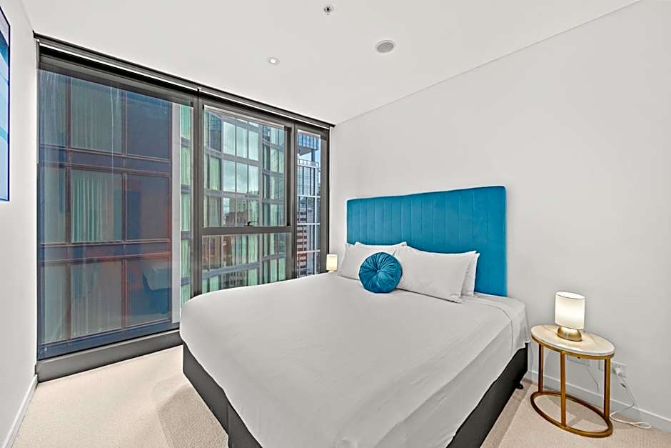 Overlooking surrounding buildings and located on levels 6-39 with access to the recreational facilities on level 40, this modern, fully self-contained, 2-bedroom, 1-bathroom apartment has a well-appointed, fully equipped kitchen. There is a dining and living area, laundry facilities, and free unlimited WiFi.